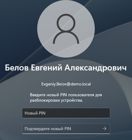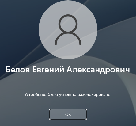 Пример экрана офлайн-разблокировки устройства в окне входа ОС Windows 11